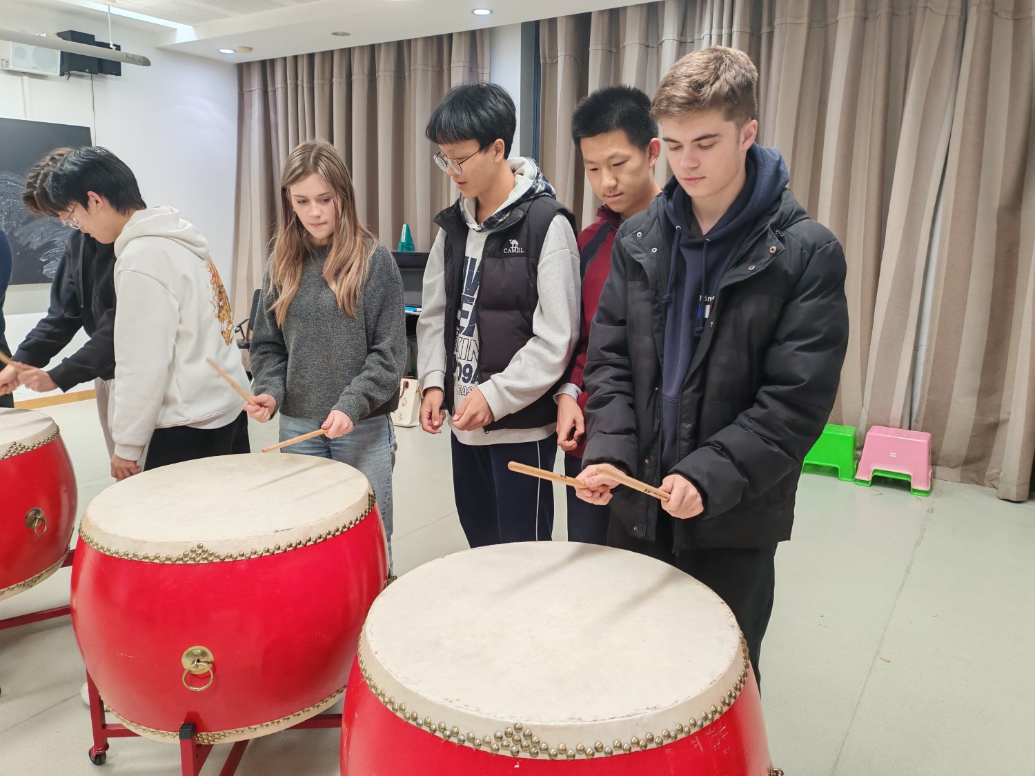 Dès leur arrivée, les élèves ont été accueillis par une cérémonie officielle puis intégrés dans les cours. Ils ont participé à diverses activités : déclamations poétiques, rencontres linguistiques, ateliers culturels, initiation aux arts martiaux, enregistrement d’une chanson traditionnelle et découverte de la musique chinoise.